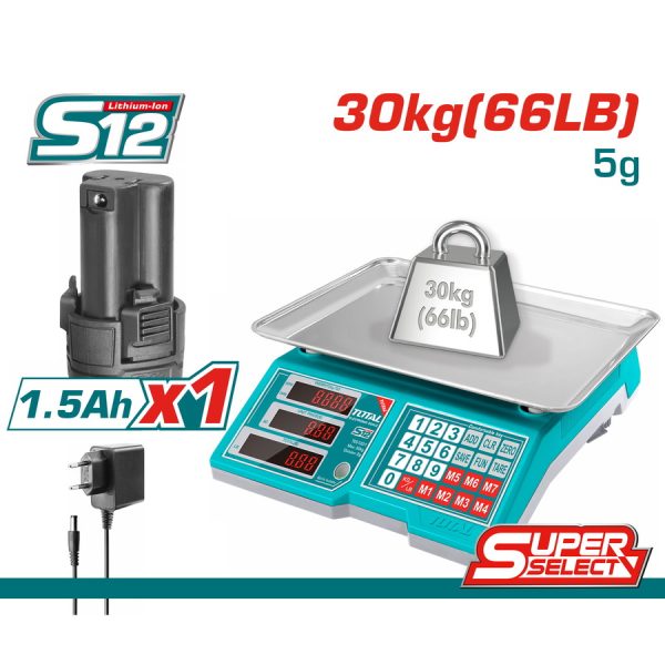 TOTAL ΗΛΕΚΤΡΟΝΙΚΗ ΖΥΓΑΡΙΑ ΡΕΥΜΑΤΟΣ ΚΑΙ ΜΠΑΤΑΡΙΑΣ 12V / 30Kg (TES1223)