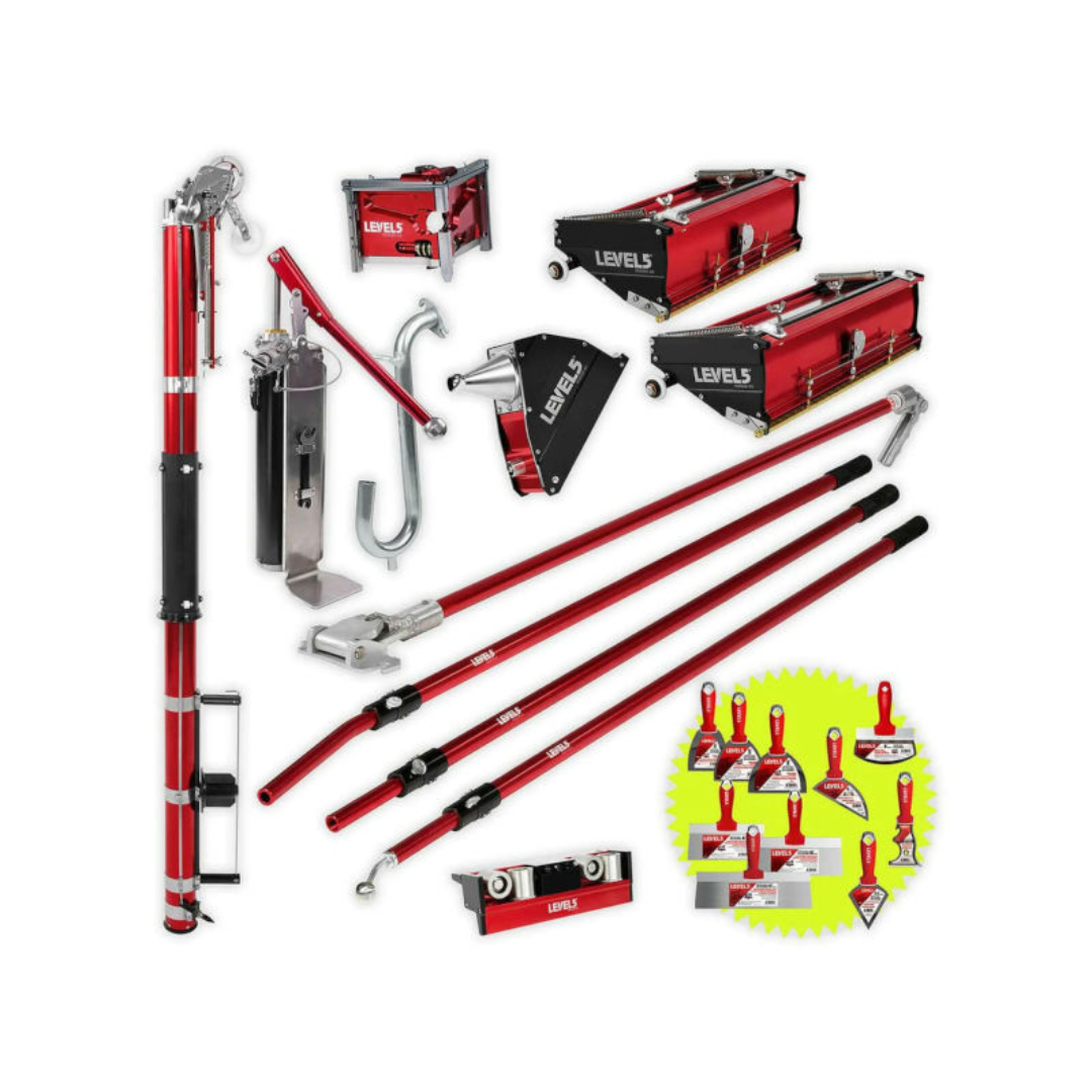 Το LEVEL5 4-600P είναι ένα πλήρες επαγγελματικό σετ εργαλείων για τοποθέτηση ταινιών (taping) και φινίρισμα (finishing) σε γυψοσανίδες. Ιδανικό για επαγγελματίες τεχνίτες που απαιτούν ταχύτητα, ακρίβεια και αντοχή.